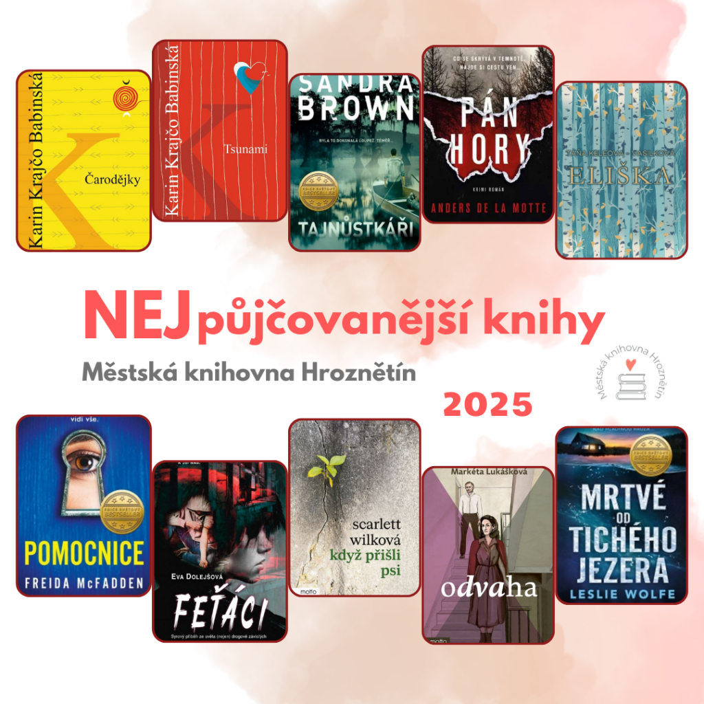 V uplynulém roce jsme zaznamenali velký zájem o moderní českou prózu a světové psychothrillery. Absolutní vítězkou se stala Karin Krajčo Babinská, jejíž román Čarodějky nasbíral celkem 13 výpůjček. Autorka navíc bodovala i se svou další knihou Tsunami. Tu si čtenáři odnesli dvanáctkrát. Na paty jí šlapala „královna napětí“ Sandra Brown s titulem Tajnůstkáři a autorka současné krimi Freida McFadden s knihou Pomocnice. Mezi nejoblíbenější autory loňského roku se zařadili také Anders de la Motte s titulem Pán hory, Táňa Keleová-Vasilková a její román Eliška či další české autorky Eva Dolejšová se syrovým příběhem Fet’áci, Scarlett Wilková s titulem Když přišli psi nebo Markéta Lukášková a její Odvaha.